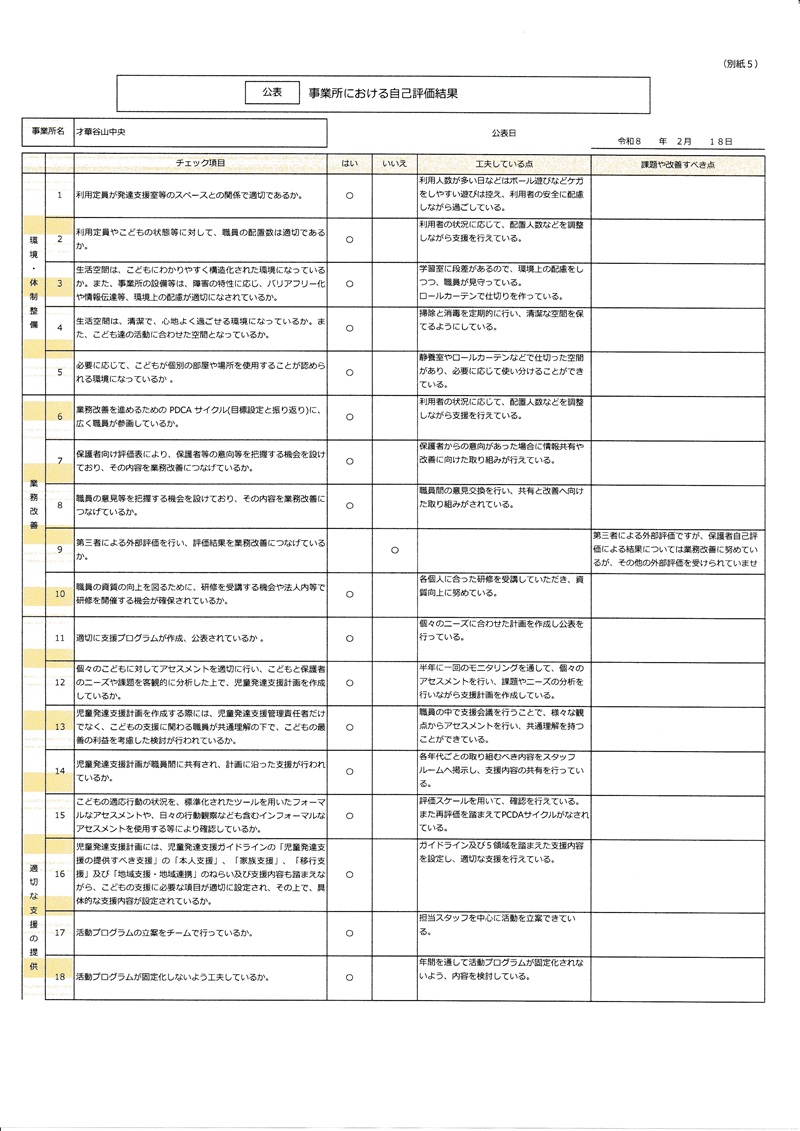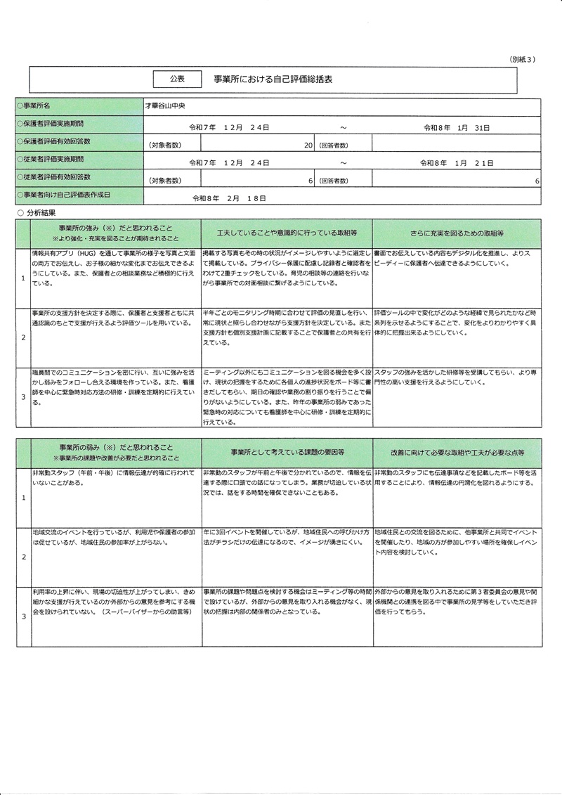 令和7年度の事業所評価結果が出ましたので、公表いたします。