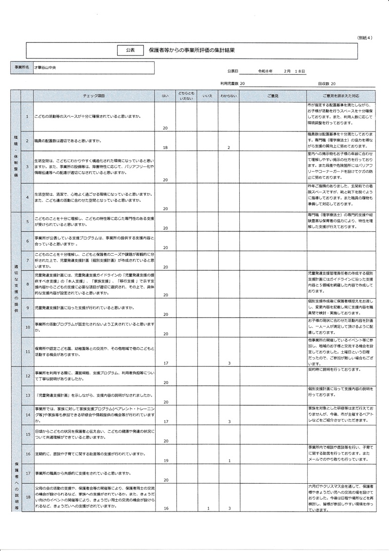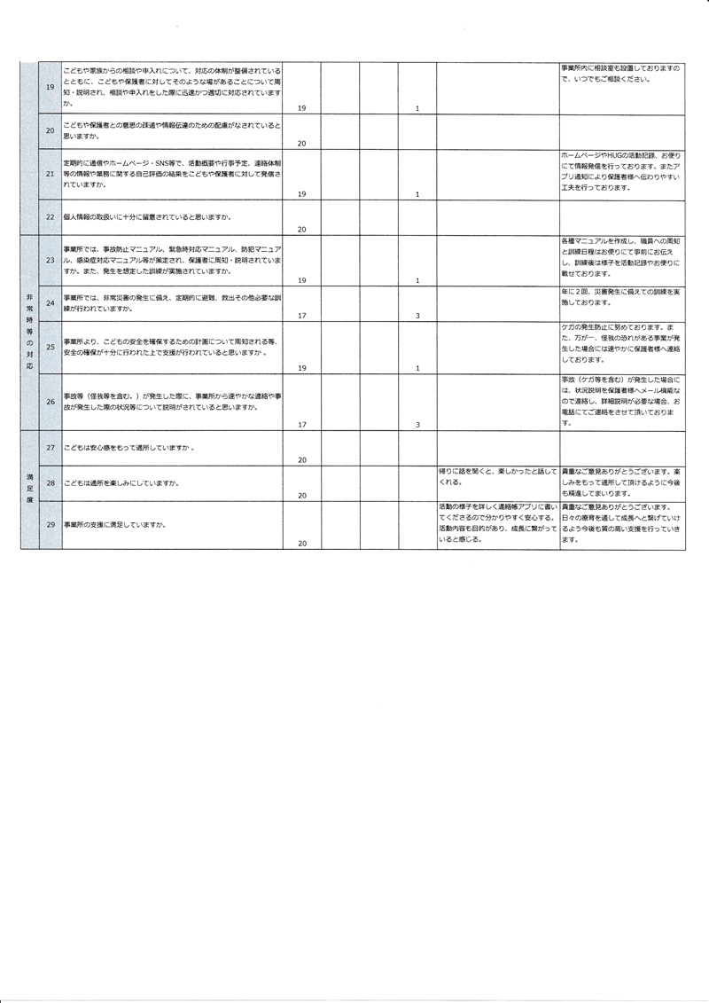 この結果をもとに、改善できるところは速やかに実施いたし、利用者の満足度をさらに高めていきたいと思います。