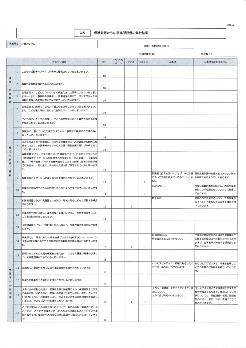 令和7年度事業所評価結果 放課後等デイサービスの部
