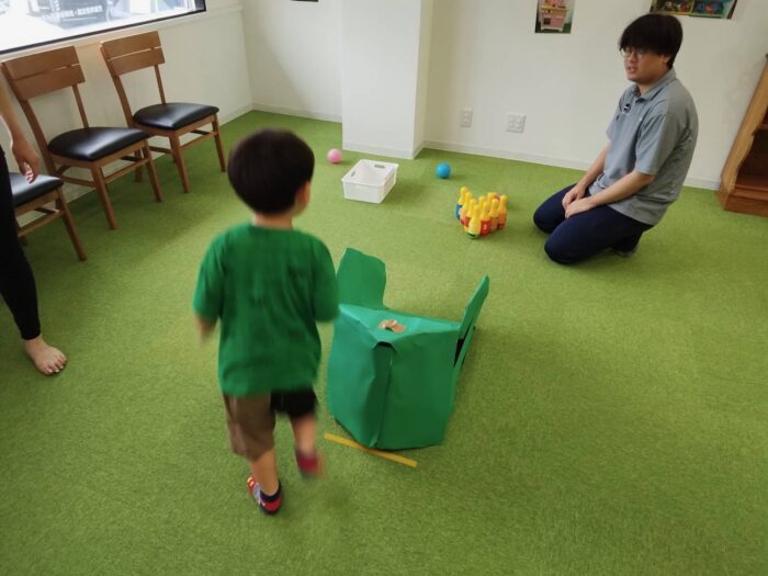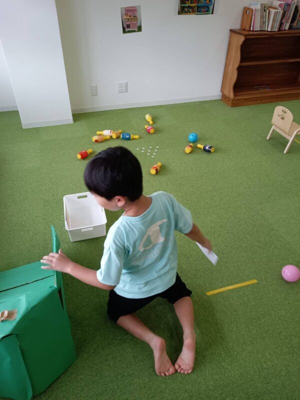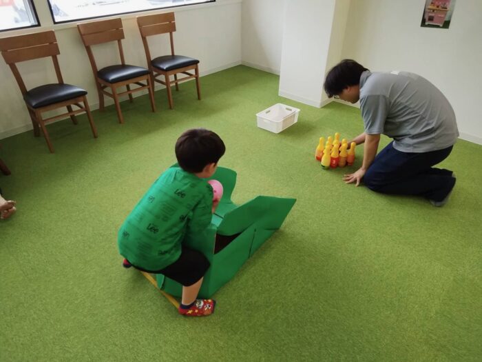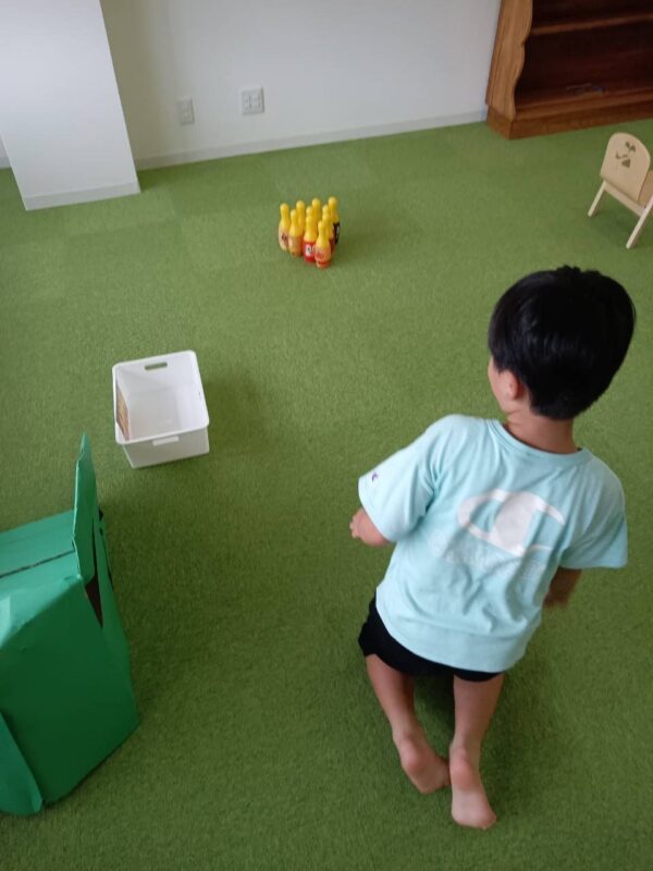 雨にもかかわらず、たくさんのお友達が来てくれました。みんなで手作りしたちょうちんや金魚すくいやボーリングなど、思いっきり楽しんでいました。全部、クリアーしたらスタンプがもらえて、たまったらお菓子と交換できるということで、みんなスタンプをためようと一生懸命でした(笑)